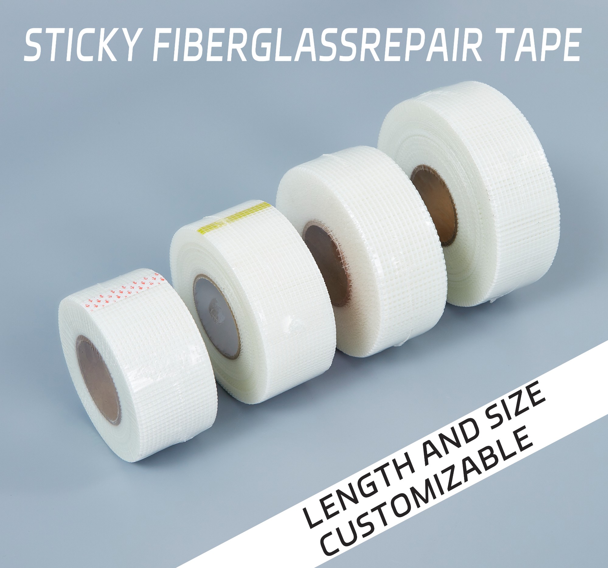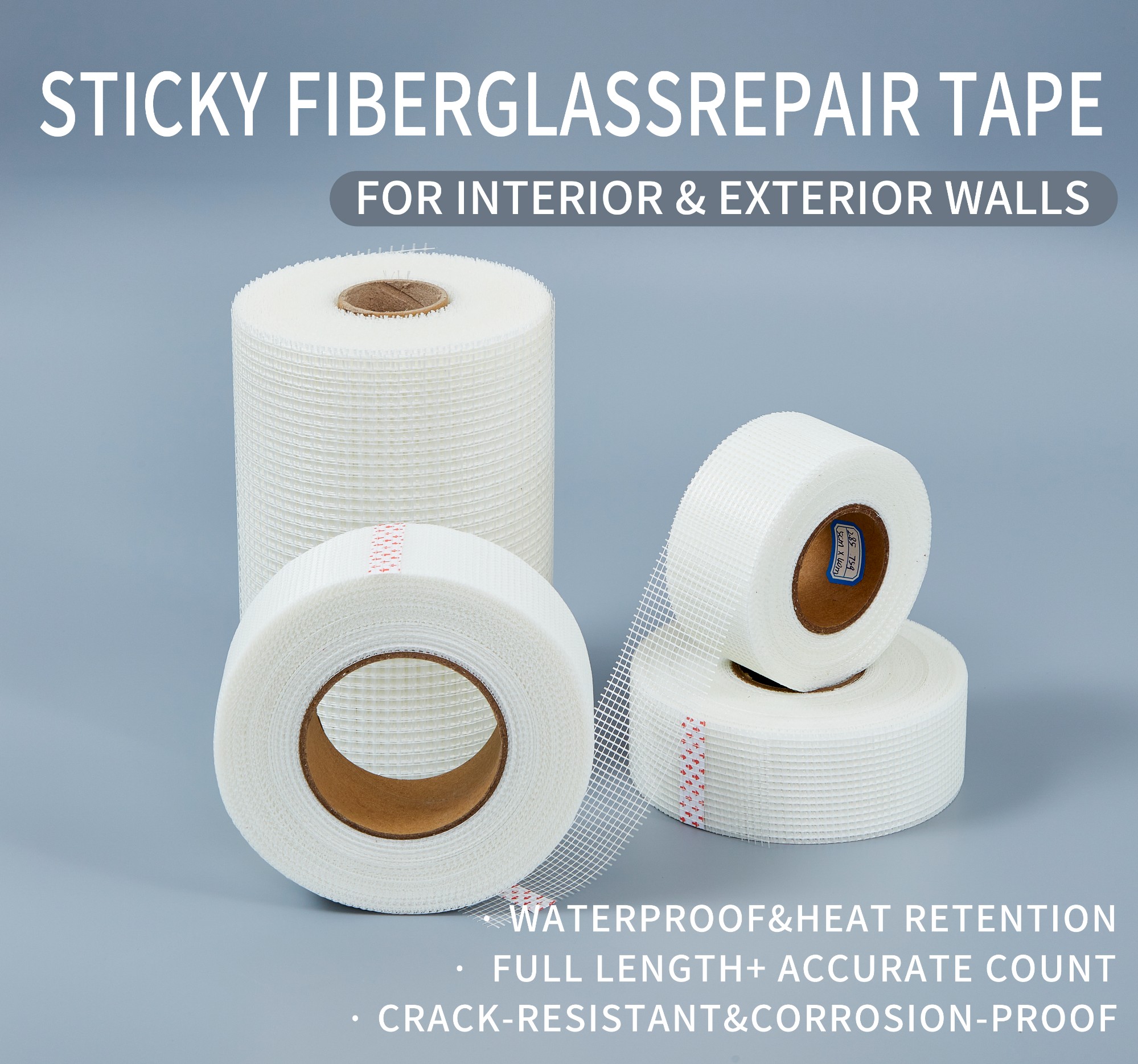 glass fiber self-adhesive tape is a coated acrylic copolymer divided into different widths and lengths. Fiberglass is chemical property stable and does not oxidize easily. Widely used in wall renovation decoration, wall cracks repair, holes and gypsum board joint treatment. You can also bond gypsum board, cement and other building materials, in order to prevent building materials appear cracks. In addition, the glass fiber self-adhesive tape can be combined with other materials to enhance the toughness and tensile strength of the composite materials to achieve enhanced anti-cracking purposes.